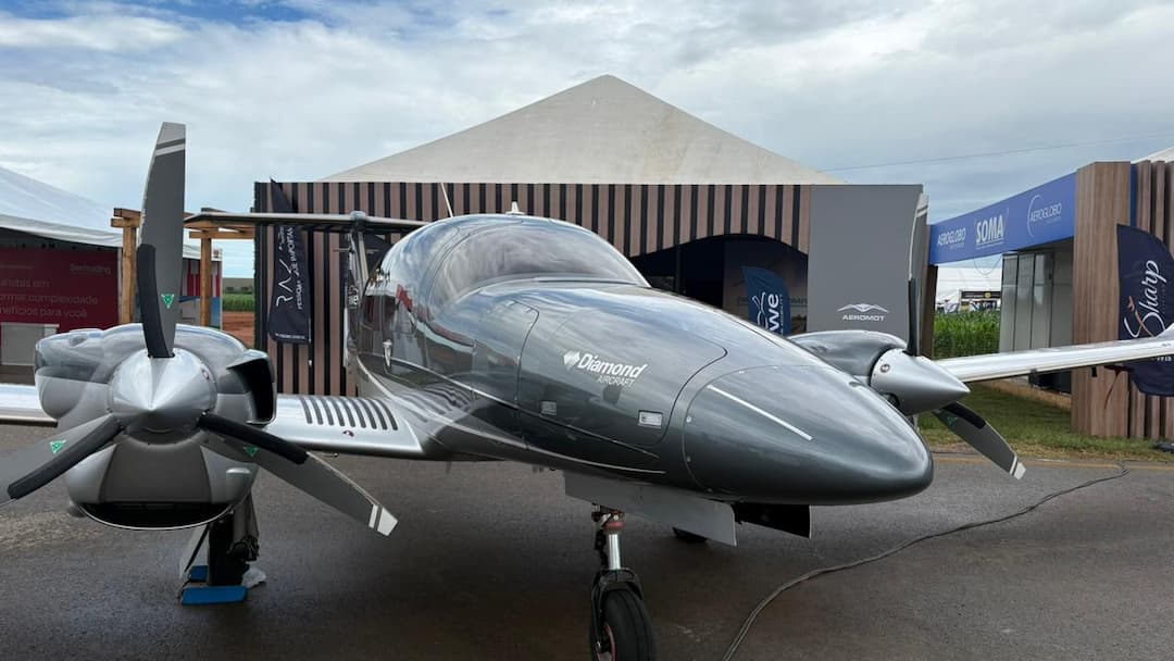Durante a feira, a AEROMOT apresentou a aeronave Diamond DA62, destacando soluções desenvolvidas pela empresa, reforçando seu compromisso com inovação e atendimento às demandas do mercado.